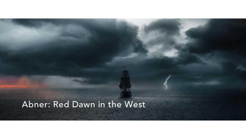 I found this image whilst browsing around online and felt it captured perfectly a key moment towards the end of the novel. I’m afraid I have no info about whose it is. For a while, the novel was going to be called ‘Abner: Red Dawn in the West’, but that’s a terrible title! I still love the image, though.
